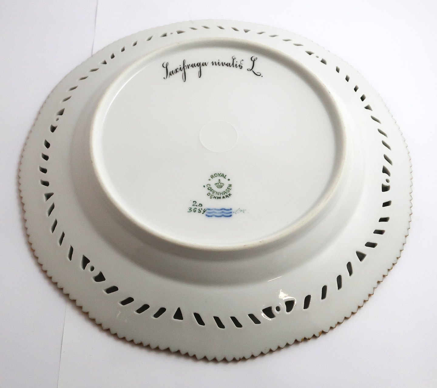 Royal Copenhagen Flora Danica. Lunch plate with open-work border. Design # 3554. Diameter 23 cm. (1 quality). Saxifraga nivalis L