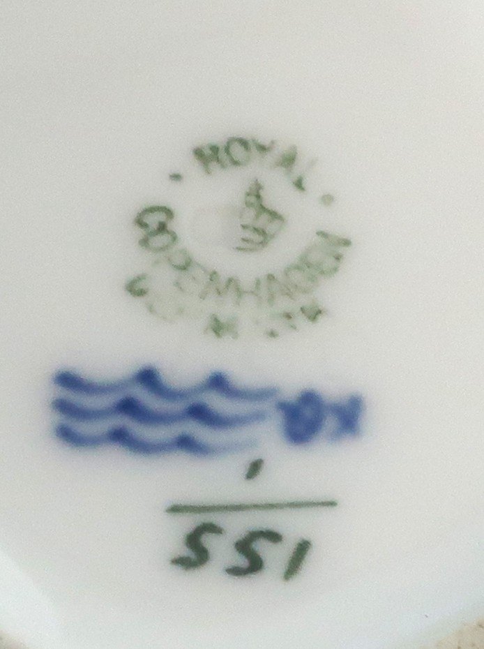 Royal Copenhagen. Fish plate with green border. Mo