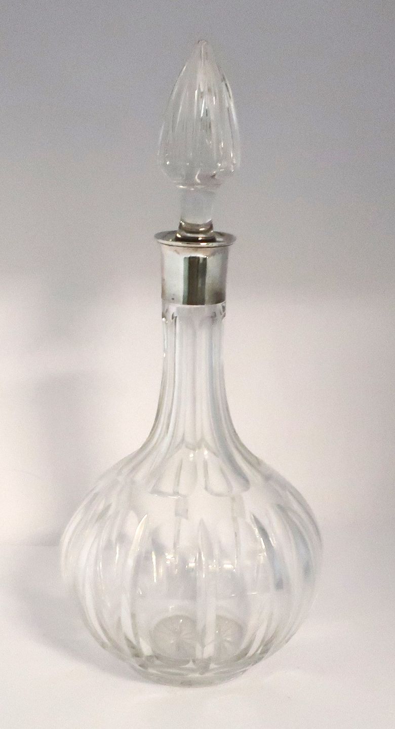 Crystal decanter with silver mounting (830). Heigh