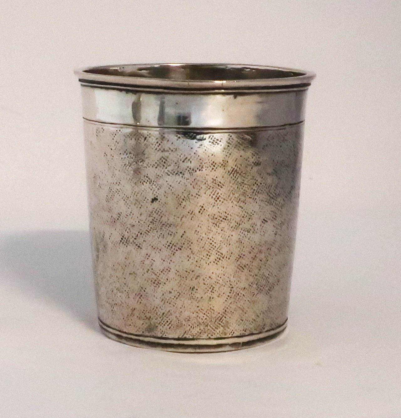 Anders Jensen Klem, Ringköbing & Holstebro og Lemvig. Silver goblet with inscription from 1718. Height 7 cm. Diameter 6.5 cm