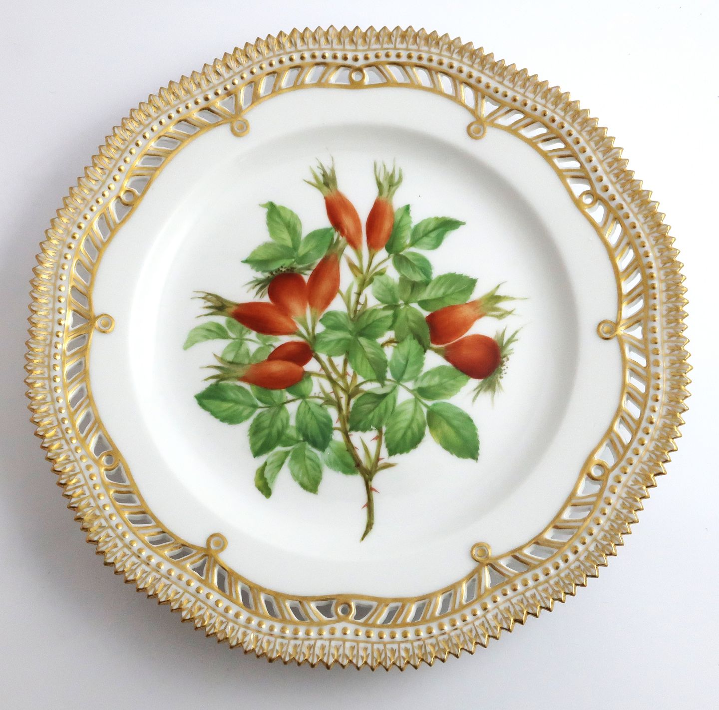 Royal Copenhagen Flora Danica, fruit plate. Lunch plate with open-work border. Design # 429/3554. Diameter 23 cm. (1 quality).