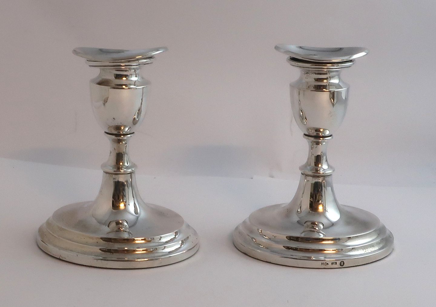 Hugo Grün, Copenhagen. (H.Gr). Silver candlesticks (830). A pair. Height 12.5 cm. Produced 1963.